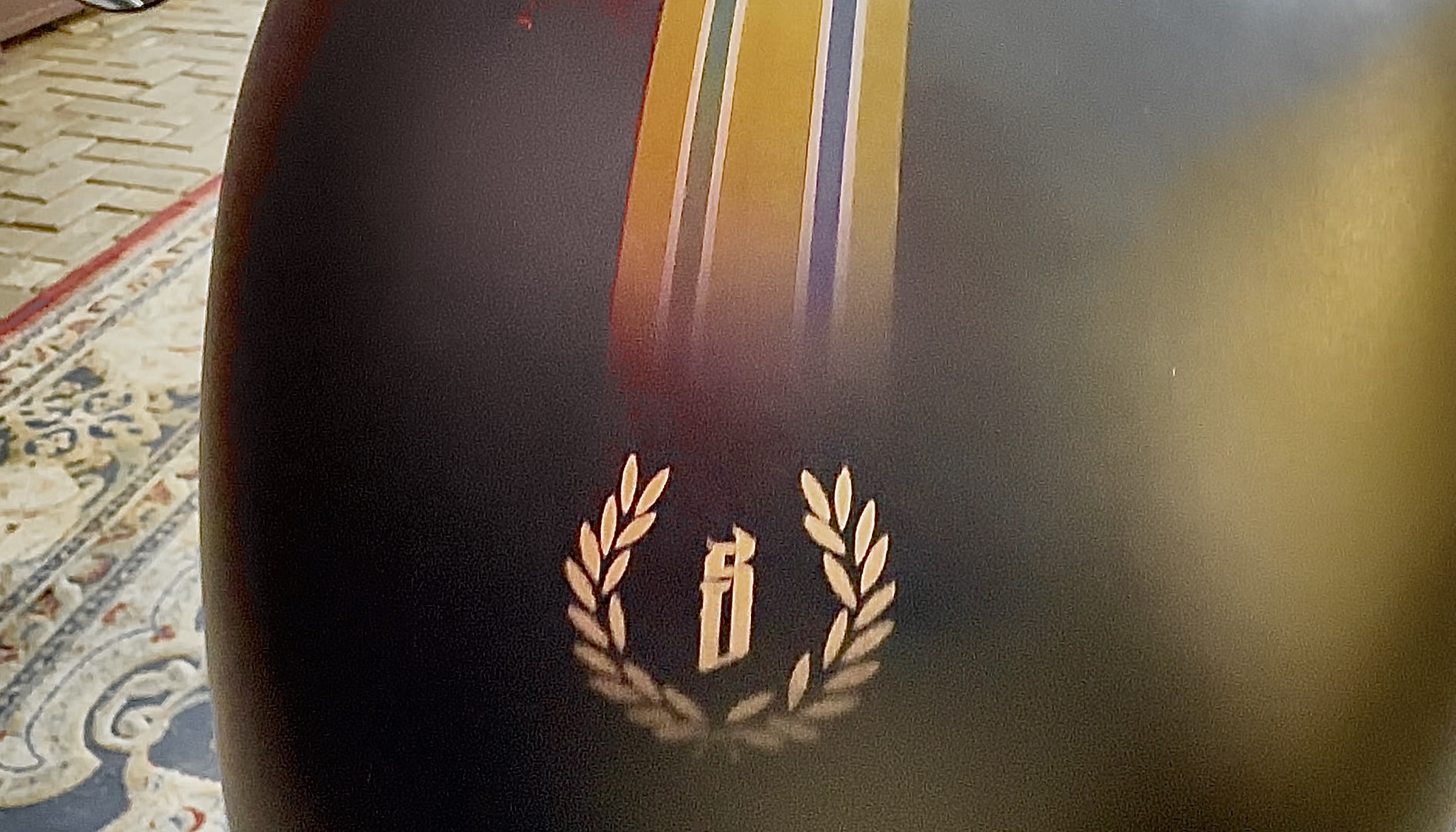 The hand-painted scale motif, the sharp crease of the tank, the reimagined tail section — all convey motion, even at standstill. On the tank, the silhouette of Brazil emerges with quiet force, a tribute to Ayrton Senna, eternal icon of daring and originality.