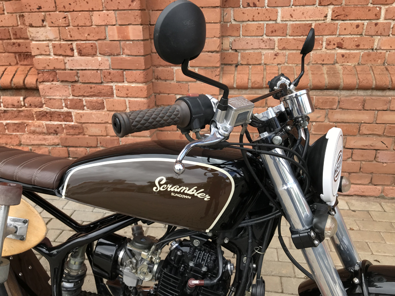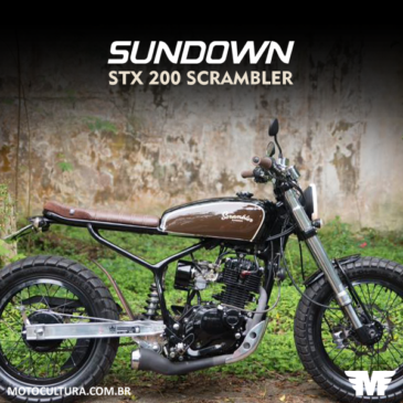 A Sundown começou suas atividades por aqui no ano de 2003 com a proposta de motos de baixa cilindrada, alternativas as já estabelecidas, para o consumidor brasileiro. Chegou a ser a terceira marca mais vendida no país mas, em 2011, encerrou suas atividades por conta de crise financeira entre outros fatores, como problemas e divergências com fornecedores. Deixou por aqui algumas velhas conhecidas como as pequenas Hunter 90 e Hunter 125. Entre os modelos, A STX 200 em uma versão Motard fez relativo sucesso quando o estilo ainda não era tão difundido no país e era de fato uma motocicleta bem atraente e interessante em termos de design. Porém, muitos proprietários reclamavam da baixa qualidade de muitos componentes. O tempo e o senso comum condenaram a motocicleta a status de moto descartável por conta disso. Hoje é difícil encontrá-la e, quando se encontra, custa uma pechincha. E quem diria que seria uma base incrível para uma scrambler de tirar o fôlego.